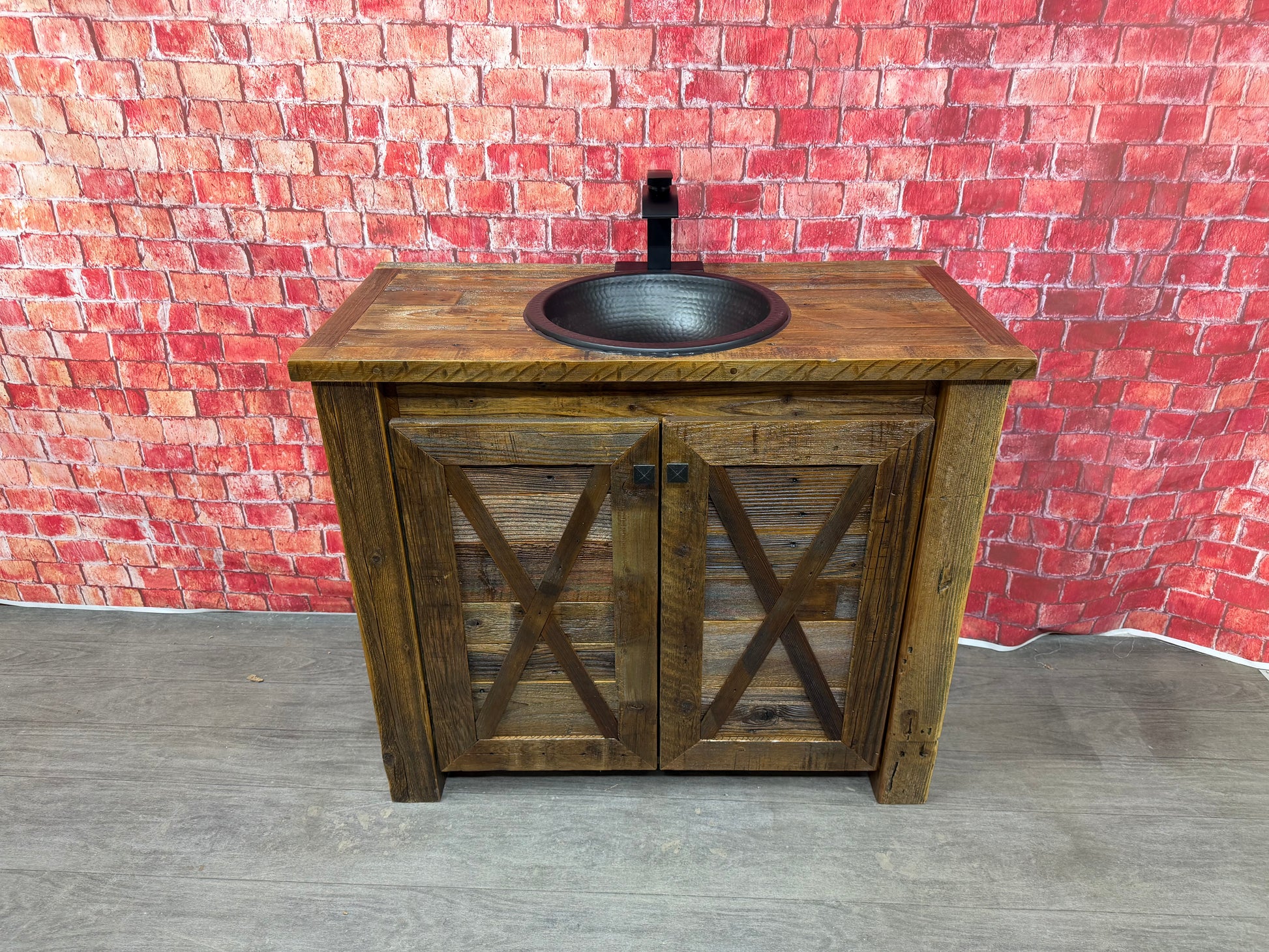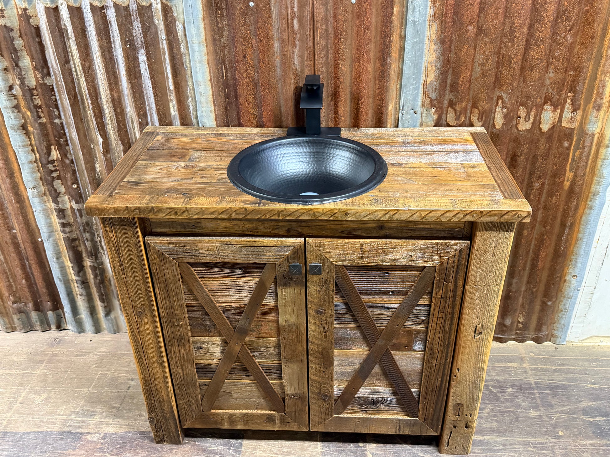 Whether you need a compact vanity for a small powder room or a full double-sink barnwood vanity for a master bath, we can build to the exact scale. Every customer can choose from: